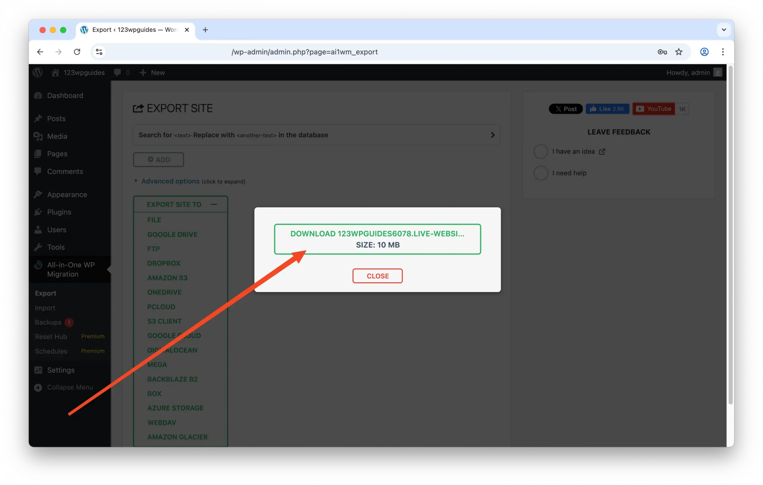 And that’s it! You can keep the backup copy of your website on your computer or send it to someone who needs a copy of your website (i.e., a support team that is troubleshooting an issue).